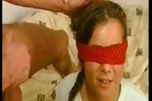 С завязанными глазами подростка собирается сосать огромный мясной палку и трахаться, пока она не кончает