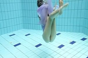 Анета позирует обнаженной в бассейне и получаю более взволнован, чем она ожидала